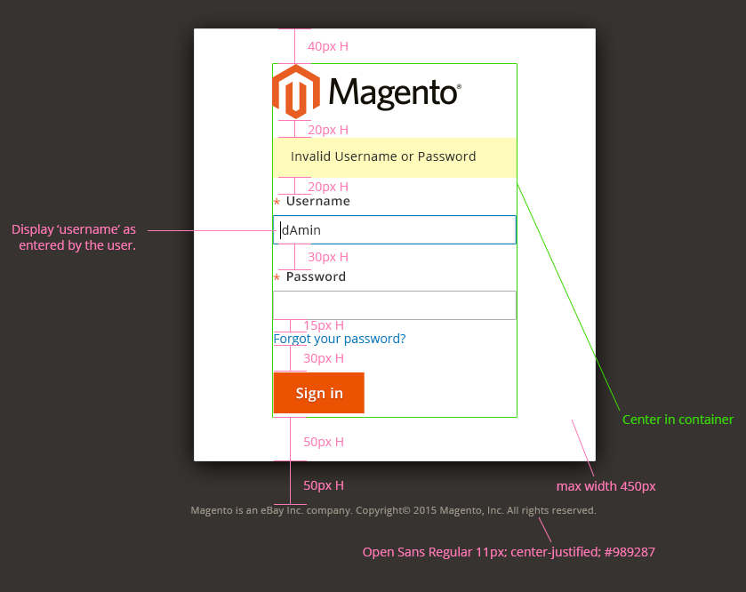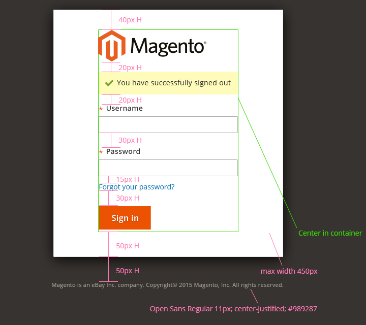 For any questions or additional information about the sign-in module please contact the Magento User Experience and Product Design team.