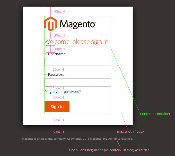 For any questions or additional information about the sign-in module please contact the Magento User Experience and Product Design team.